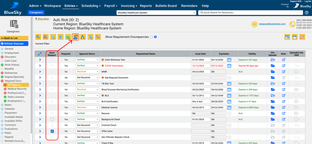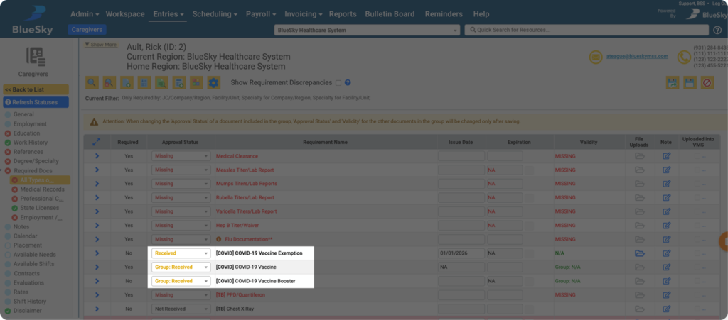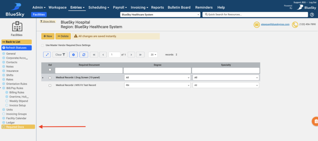 1a. We delivered a major overhaul of BlueSky’s Required Documents functionality this year, giving teams far more flexibility and control over credentialing. New configuration layers now allow requirements to be defined at the company, region, master vendor, and degree level.
