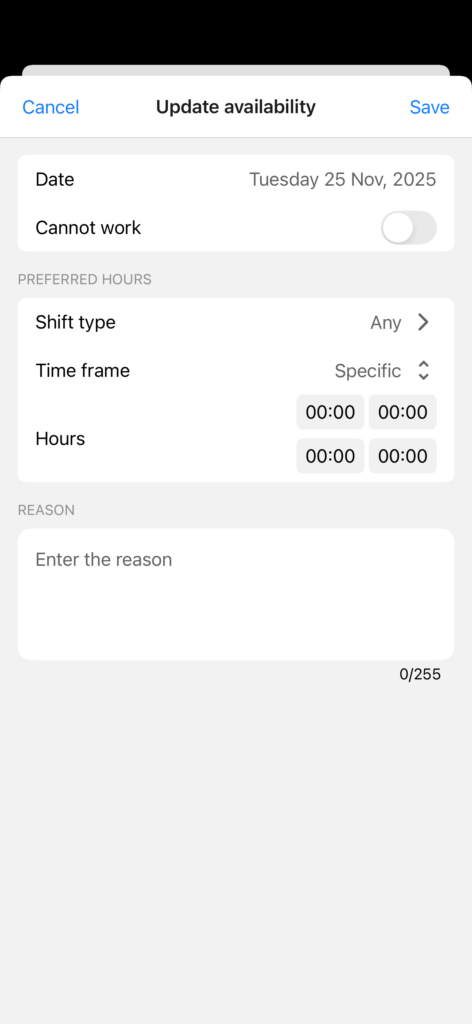 Caregivers can now submit and update their availability and preferred hours directly from the mobile app. This gives caregivers more control over their schedules while ensuring teams always have up-to-date availability without relying on manual updates.