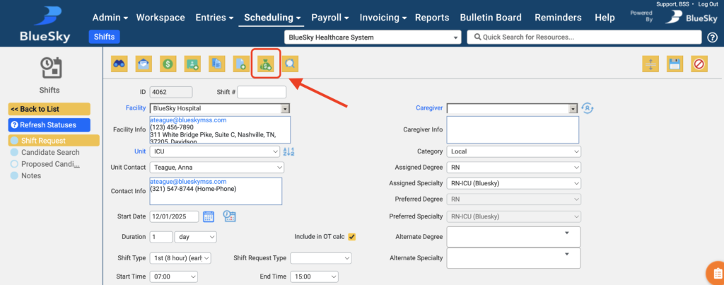 Users can now reject caregivers from open shifts by unchecking the Apply checkbox in the Candidate Search tabs, instantly removing them from consideration. Caregivers can also withdraw their own applications from the BlueSky Mobile app, supporting faster, more flexible per diem staffing workflows.